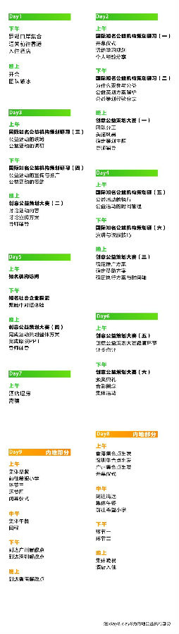 旨在通過體驗式的公益實踐教育幫助學員打破對傳統(tǒng)公益的認知定式,放眼國際社會,培養(yǎng)海外名校所注重的公益實踐、社企研習、社群協(xié)作互助等綜合背景,并在實戰(zhàn)中強化學員的策劃執(zhí)行、統(tǒng)籌合作、思維創(chuàng)新、資源整合、人脈意識等未來發(fā)展中的核心競爭力。